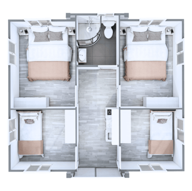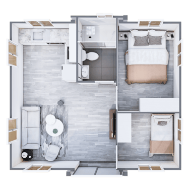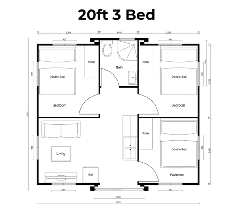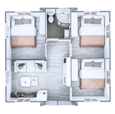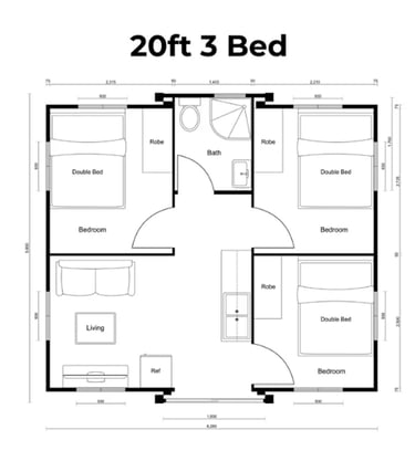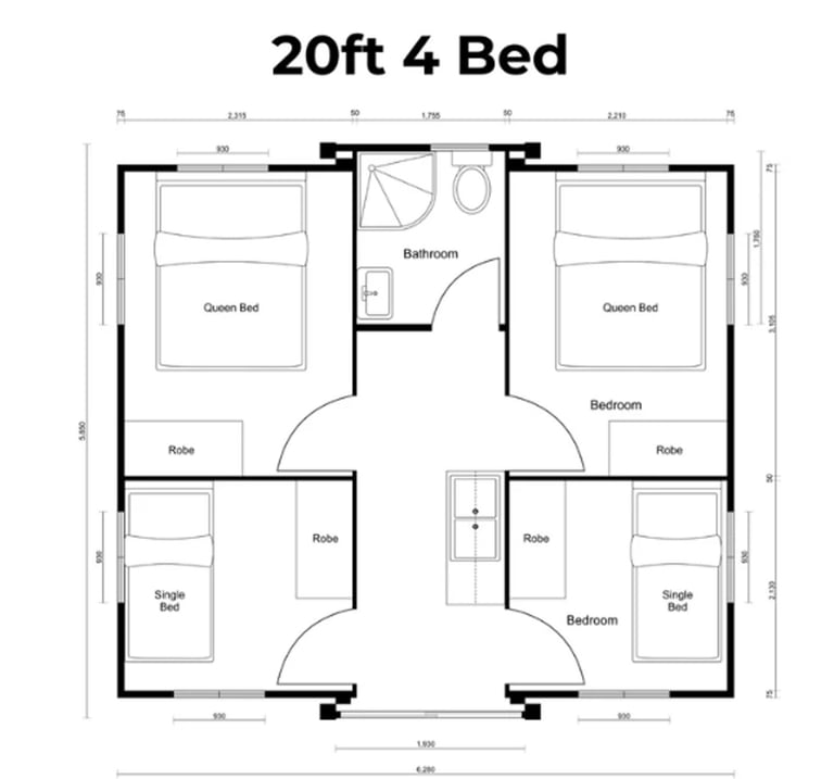 The floor plans of our Container house offer a comfortable and relaxed living experience while maximising the use of space and natural light. We have 4 unique floor plan options with 1, 2, 3, and 4 bedrooms, living space, kitchenette, and bathroom with shower +toilet.