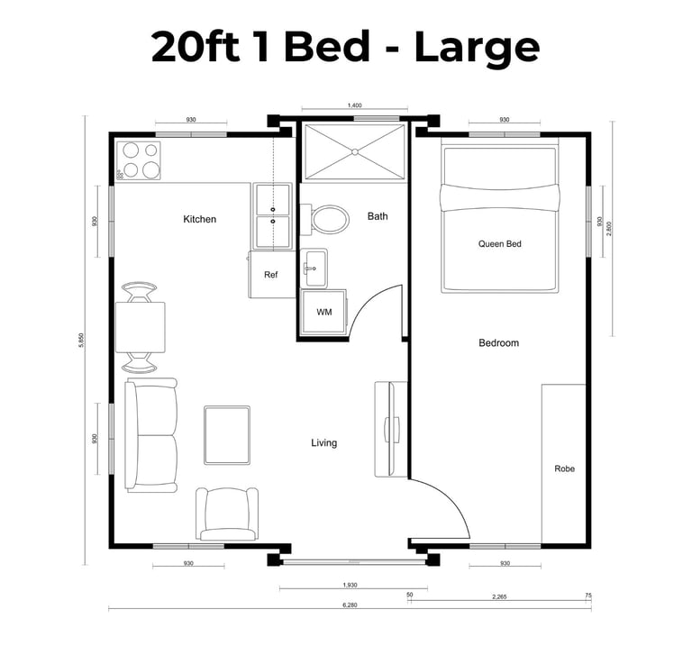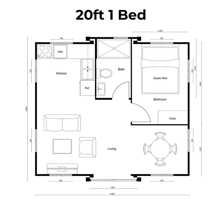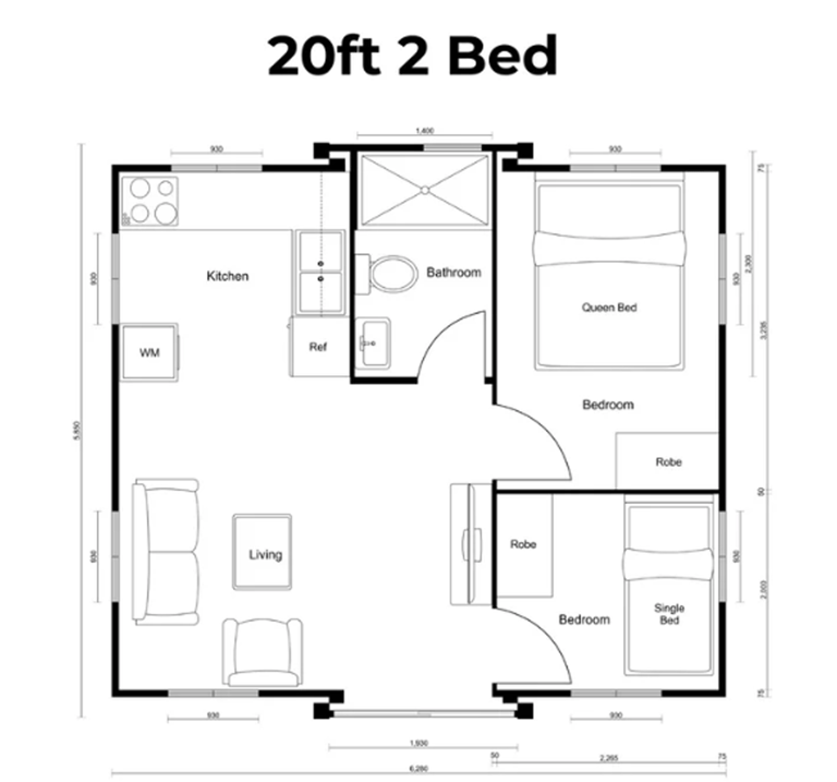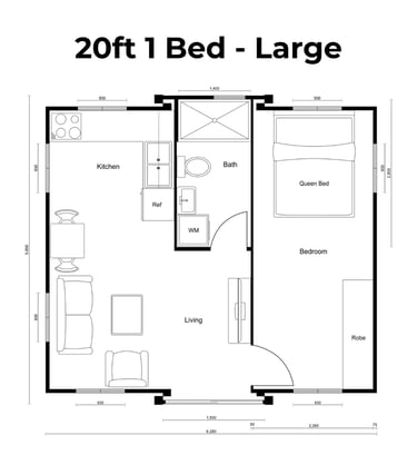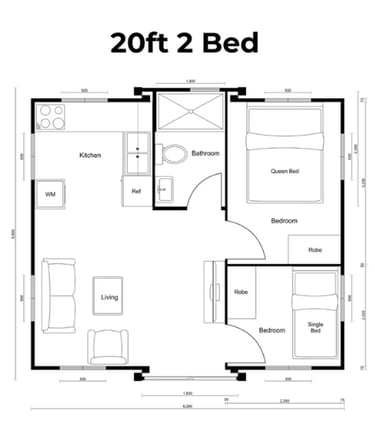 Skip the slow and expensive process thatcomes with traditional builds, our 20ft Container house can be delivered almost anywhere & installs in less than a day.