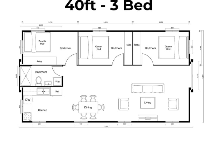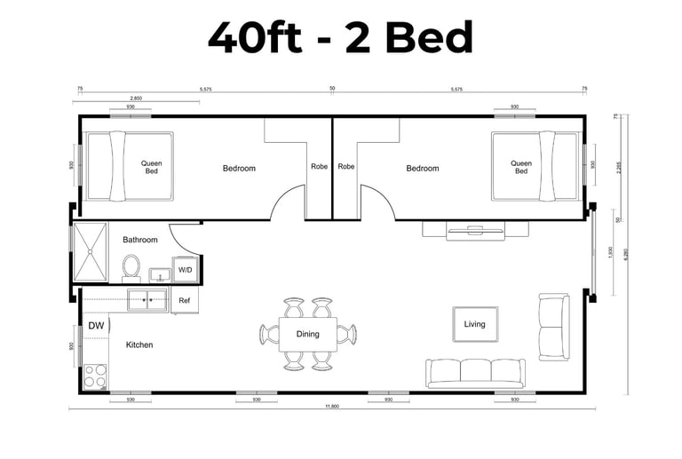Skip the slow and expensive process thatcomes with traditional builds, our 40ft Container house can be delivered almost anywhere & installs in less than a day.