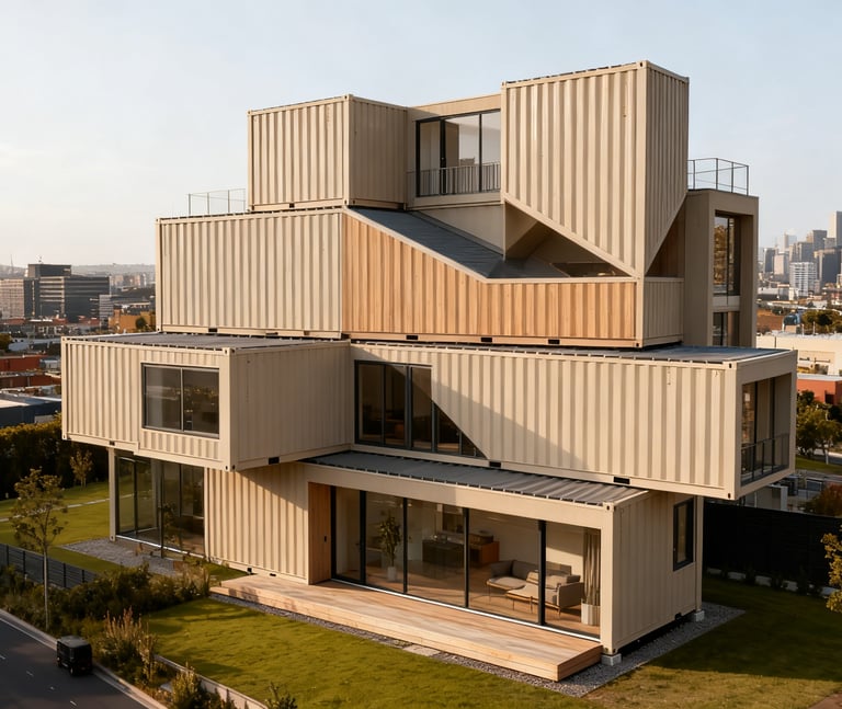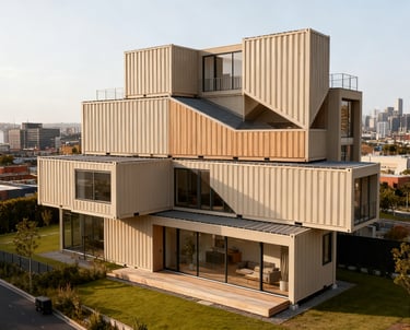 This architecturally designed double-storey residence, built from shipping containers, features heated bathroom floors, a chef's kitchen, a wine cellar, and a heated lap pool, proving that container house living can be synonymous with luxury .