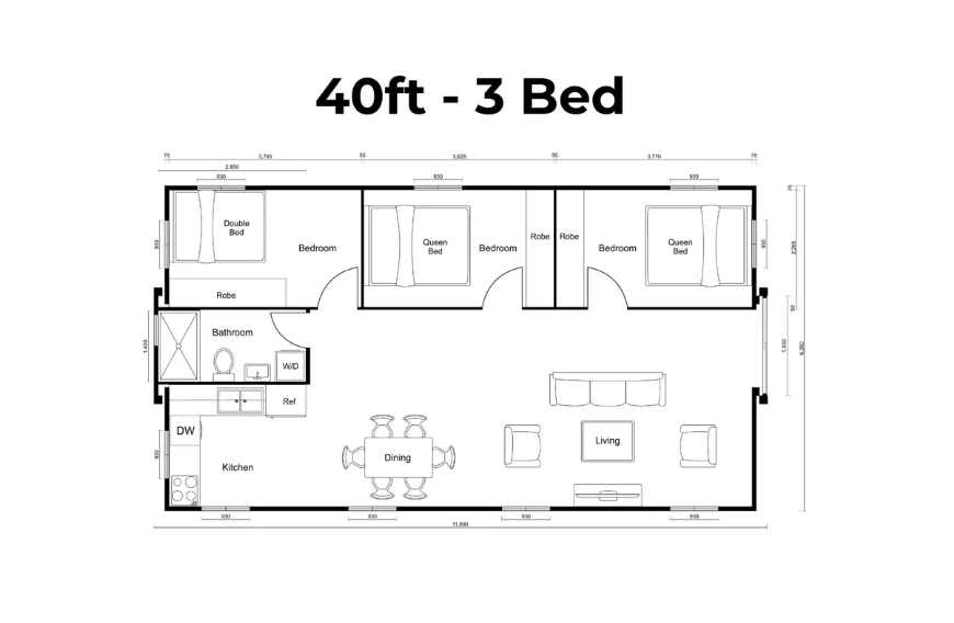 Skip the slow and expensive process thatcomes with traditional builds, our 40ft Container house can be delivered almost anywhere & installs in less than a day.
